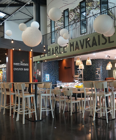 En 2023, création d’une boutique Poissonnerie, Traiteur et Bar à huîtres sous la halle gourmande 1 place Thiers au havre.